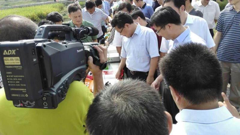 省领导正在观看虾乡稻大米